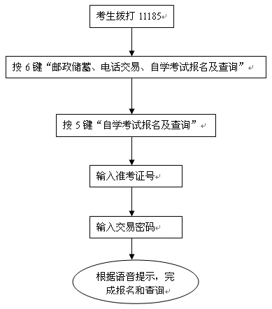 二、 考生進(jìn)入11185—6“郵政儲(chǔ)蓄、電話交易、自學(xué)考試報(bào)名及查詢業(yè)務(wù)”后,5號鍵提示“高等教育自學(xué)考試報(bào)名業(yè)務(wù)”,進(jìn)入5號鍵后,考生即可使用準(zhǔn)考證號和交易密碼完成考試報(bào)名及查詢操作。