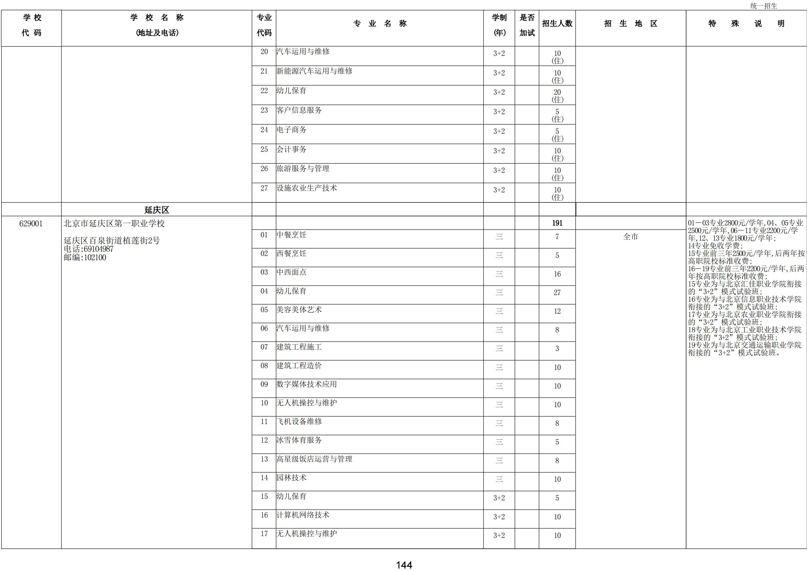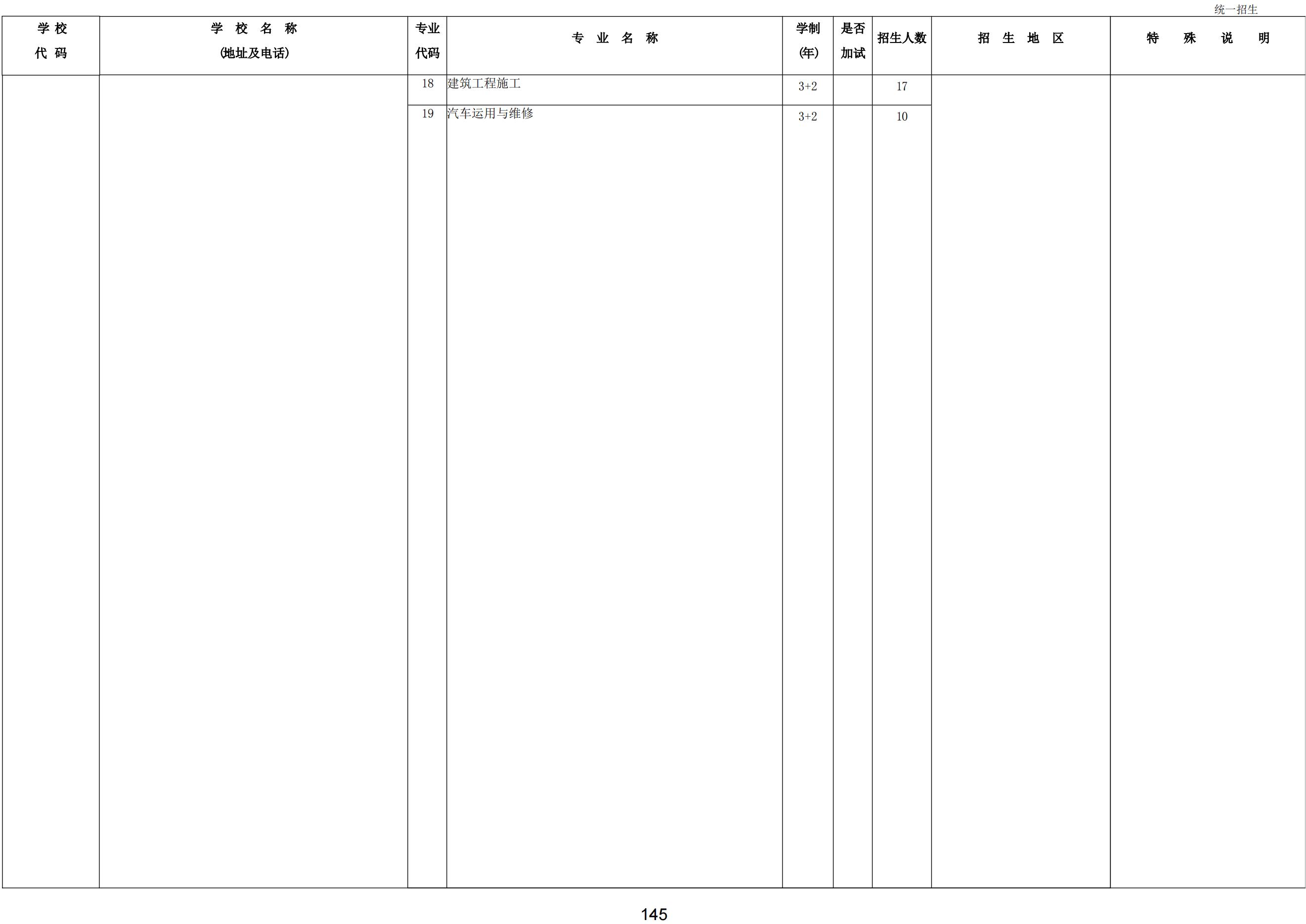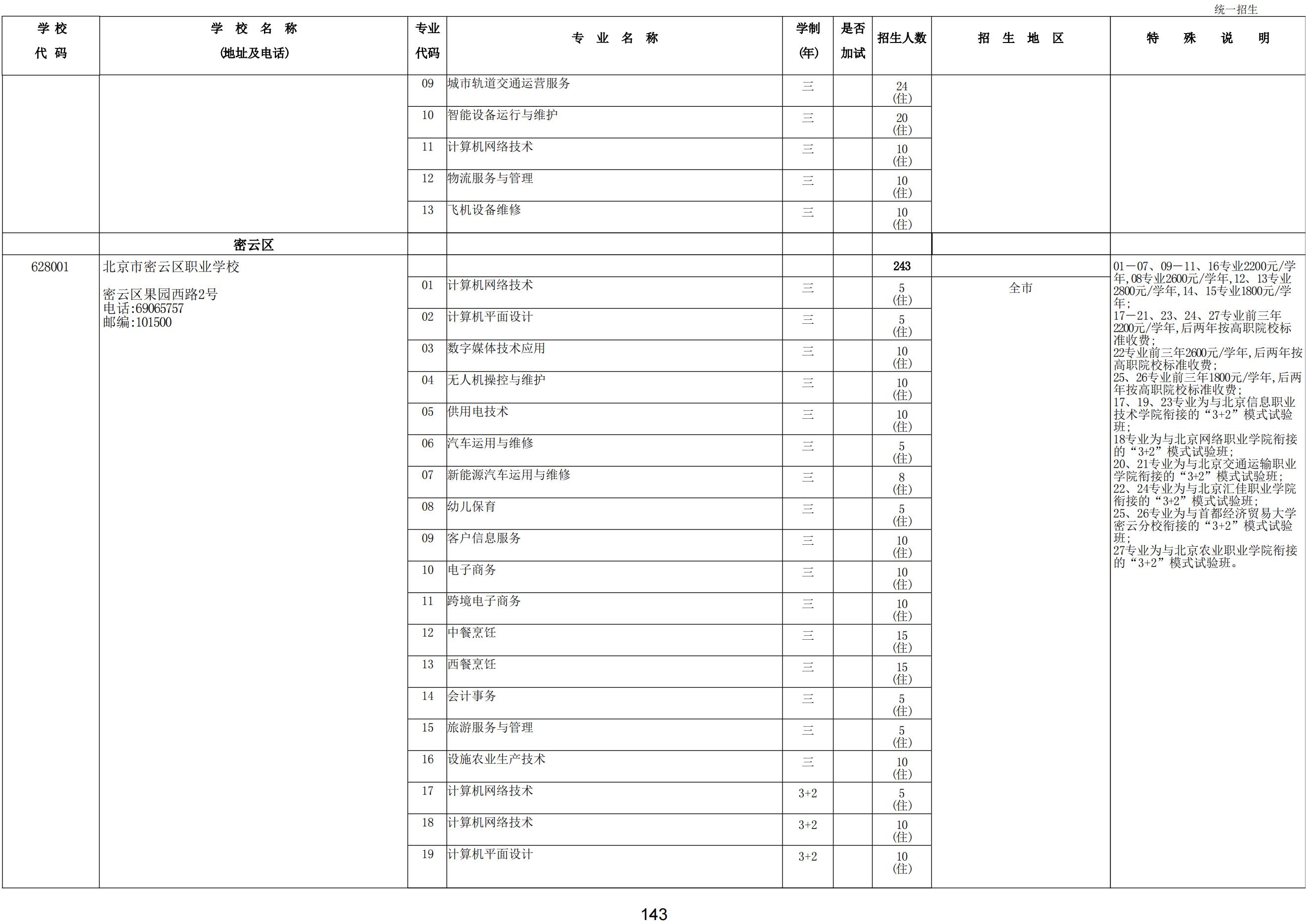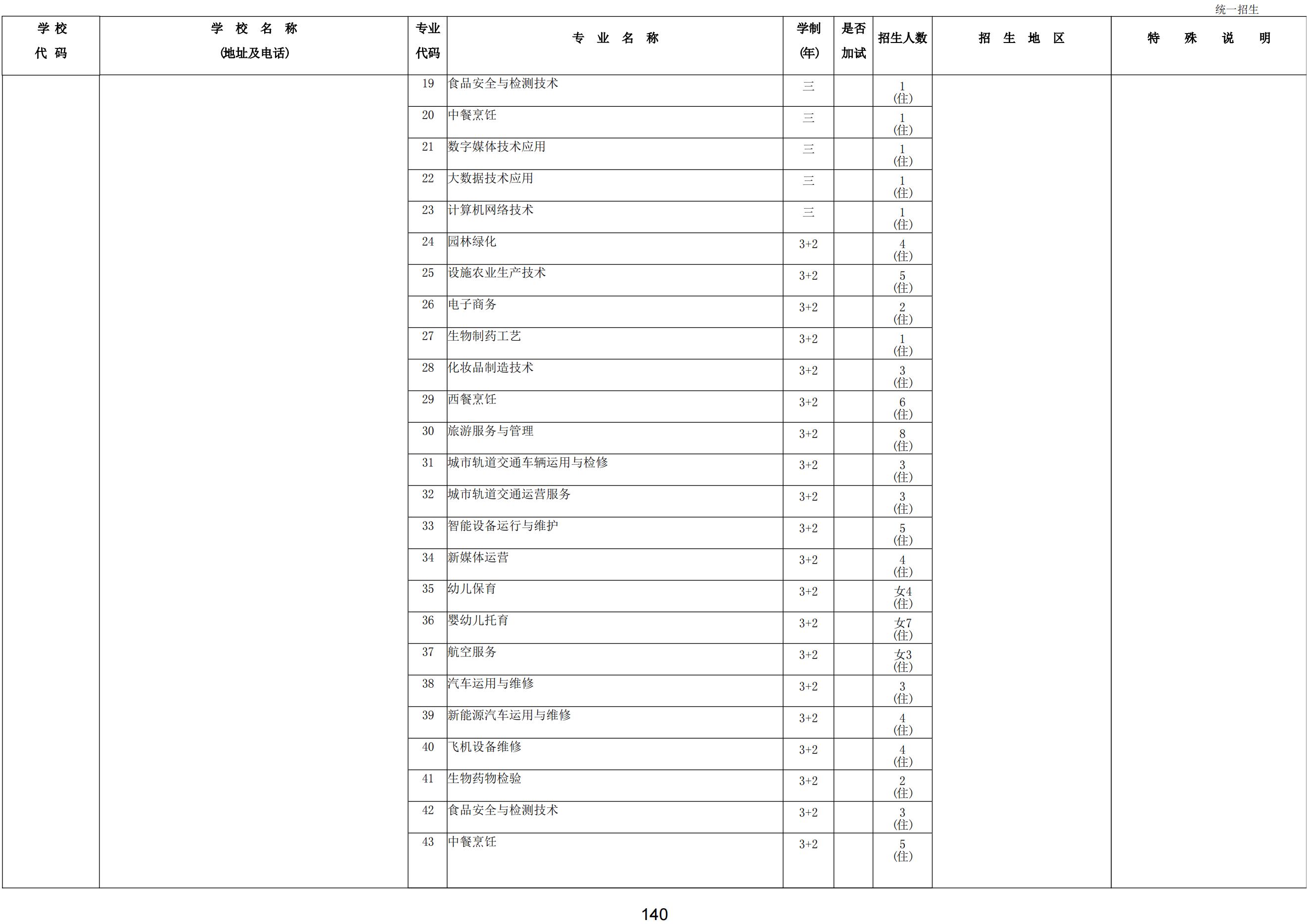 2024年職業(yè)高中學校統(tǒng)一招生計劃