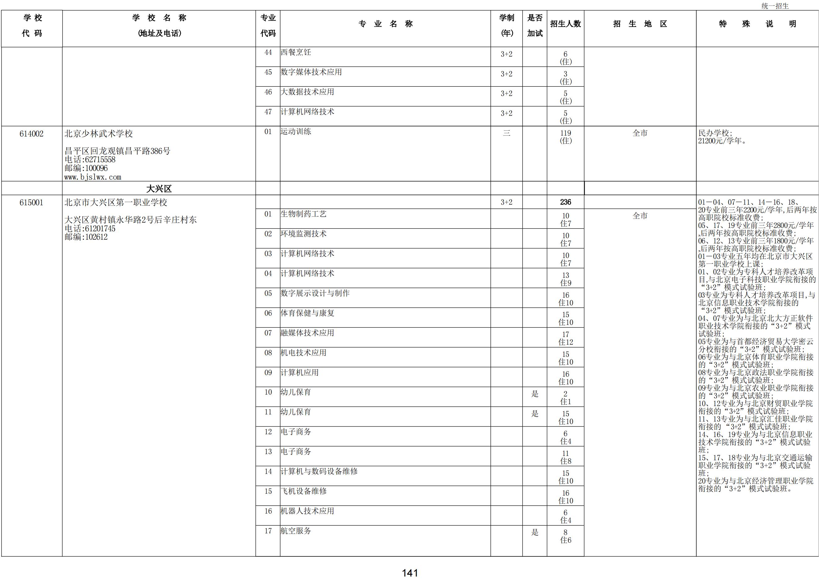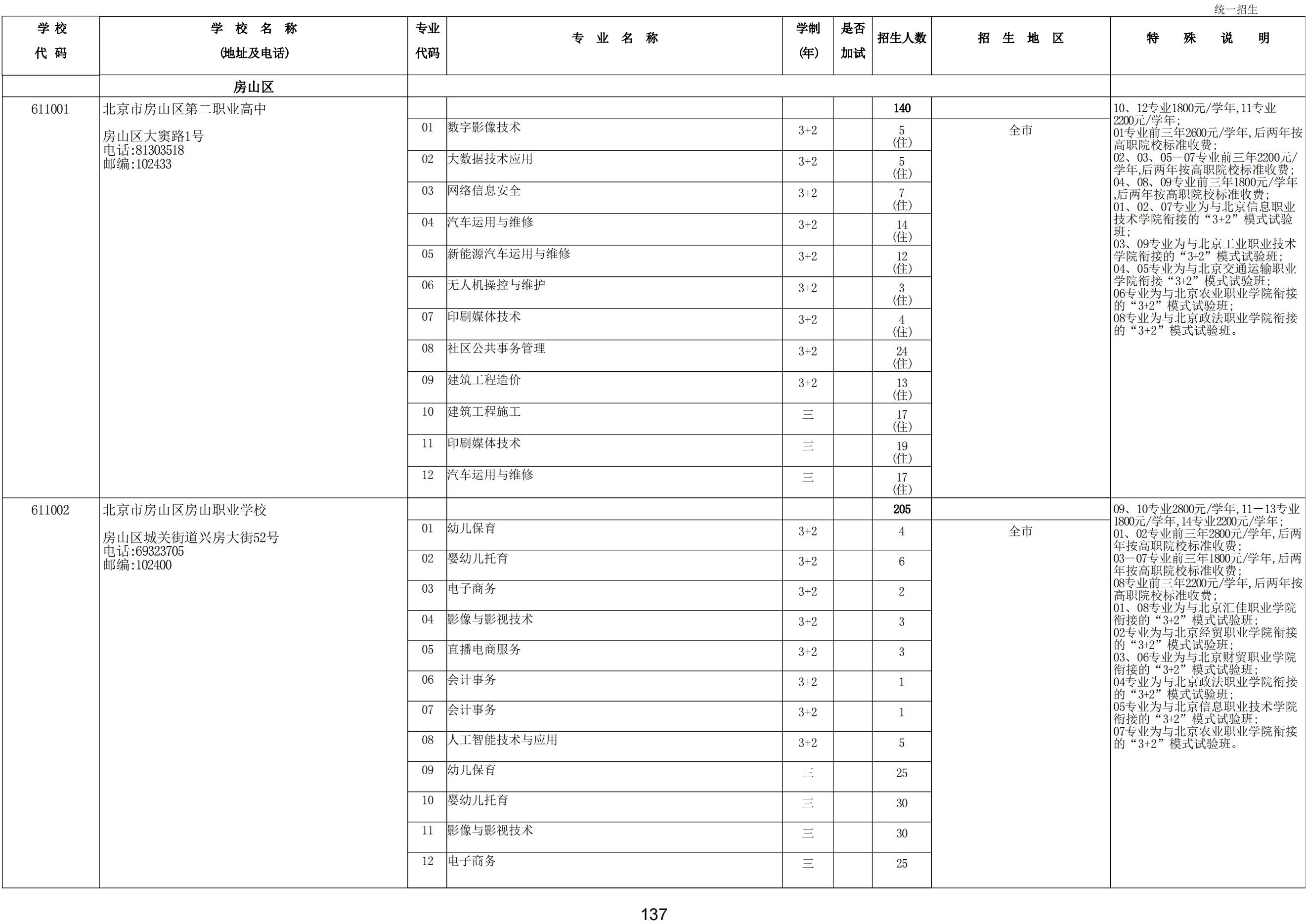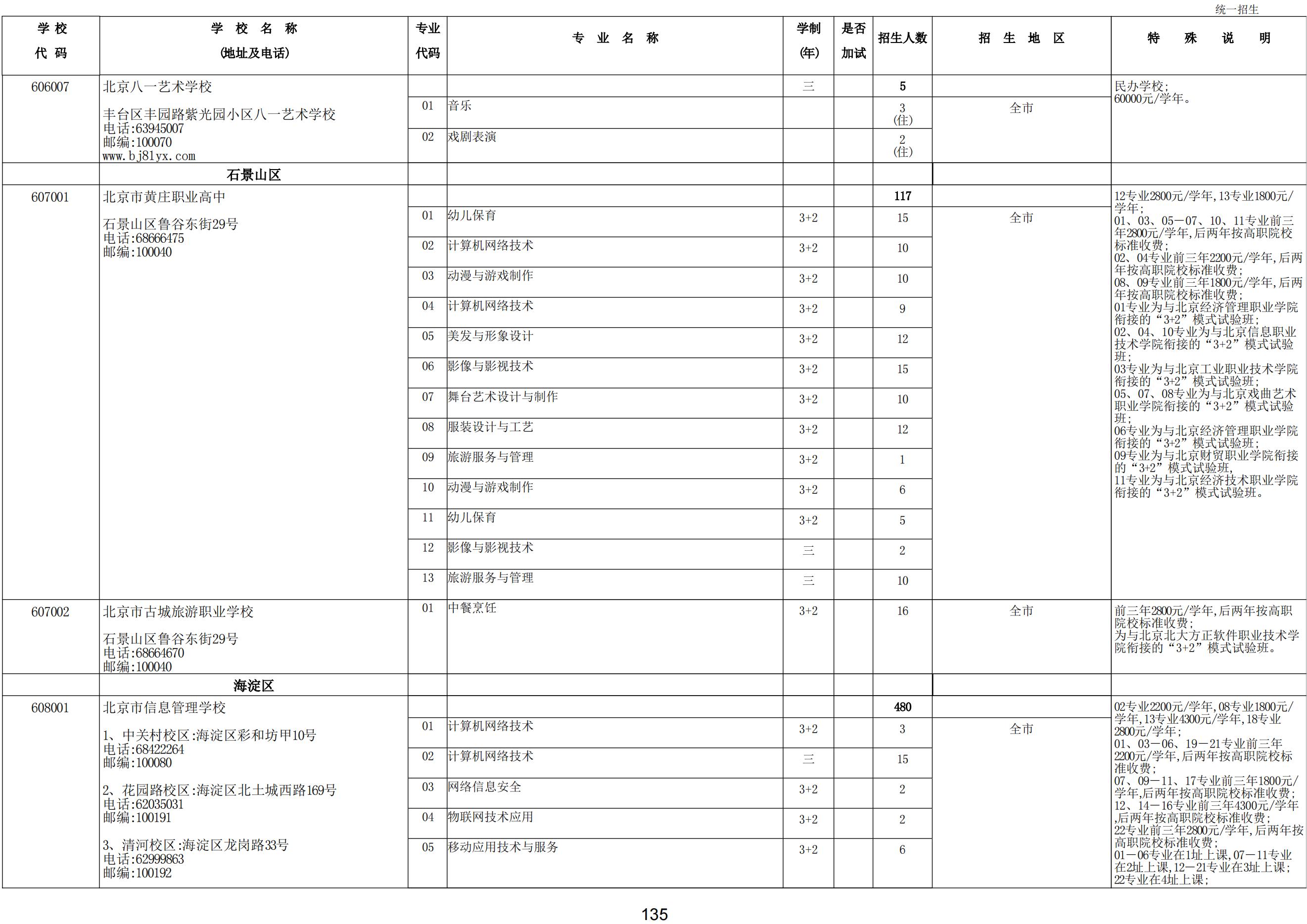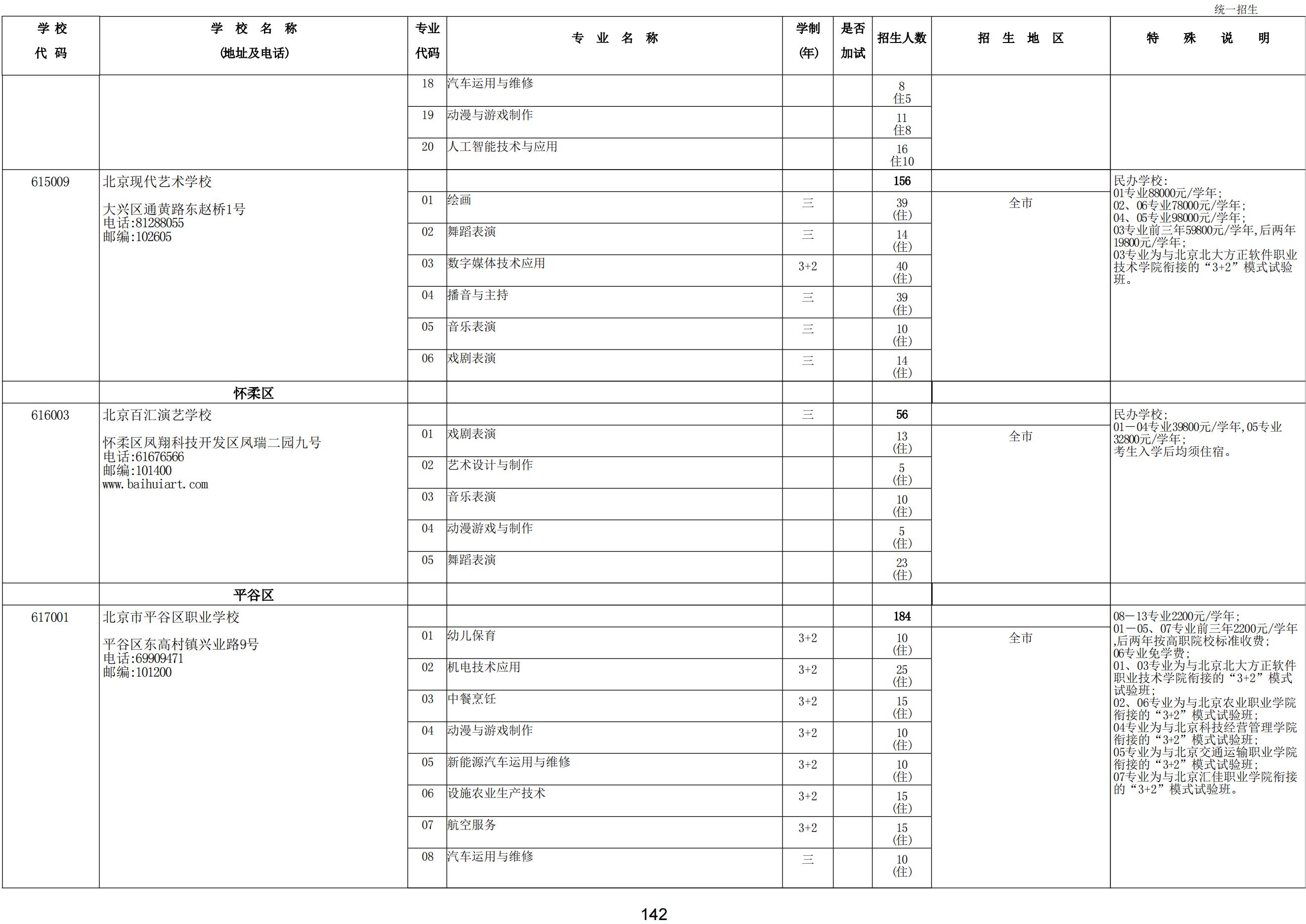 2024年職業(yè)高中學校統(tǒng)一招生計劃