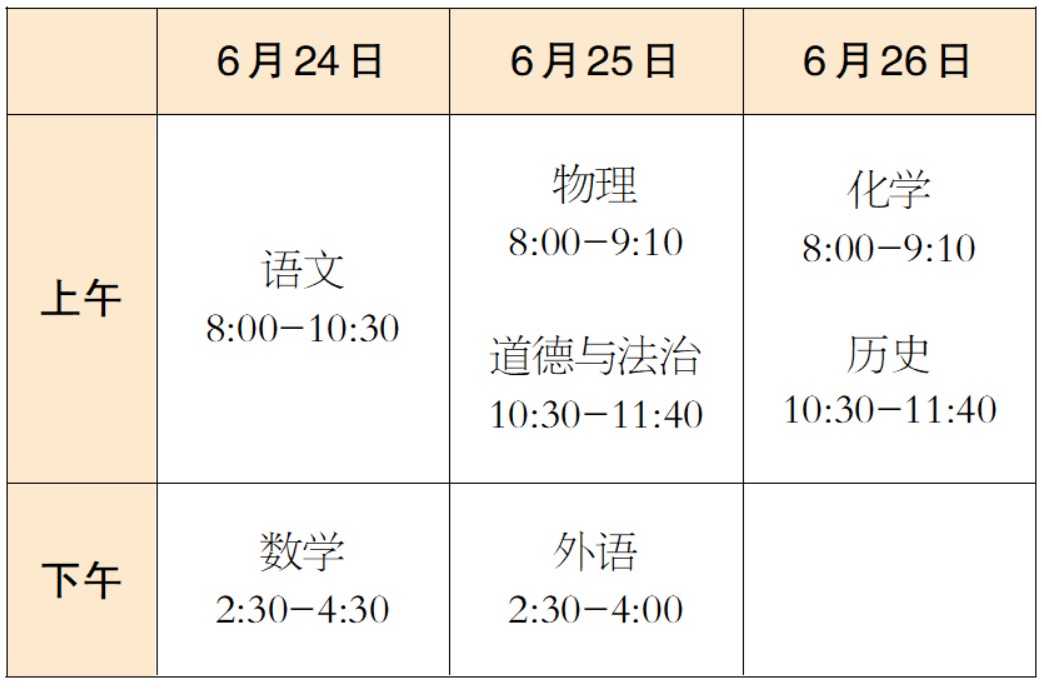 初中學業水平考試成績:7月9日12:00
